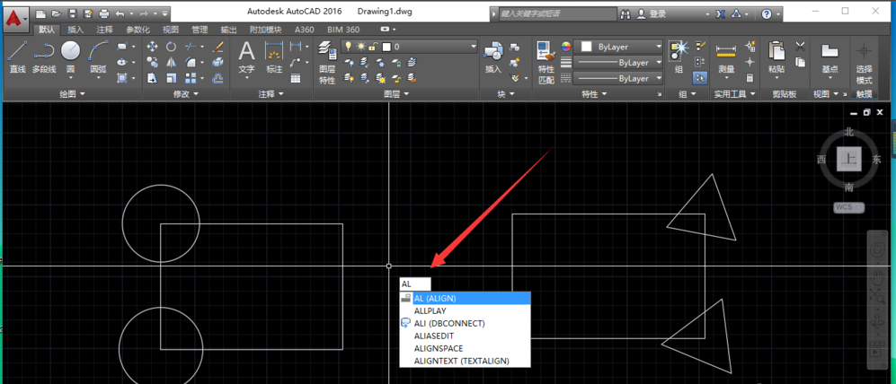 2输入对齐命令“al”,回车。
