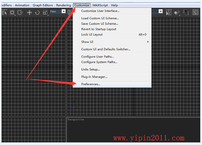 解决方法:找到3Dmax软件的菜单栏,单击“自定义”菜单(看下图)