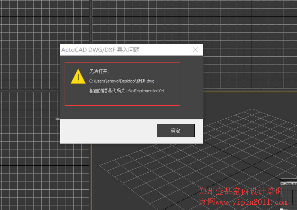 近日有同学出现因为CAD软件版本过高导入到3DMAX的文件出错失败这个问题。当把AutoCAD文件以DWG或者DXF格式导入到3D软件的时候,提示“无法打开,报告的错误代码为eNotImplementdeYet”,如果出现这种提示的话就说明CAD软件版本过高或者说对应的3Dmax版本太低。