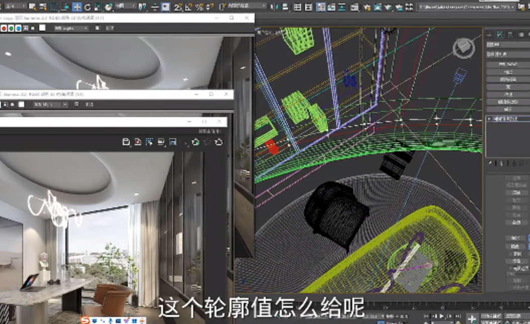 那这个穹顶啊啊对啊,刚才的球体啊,那这个穹顶光就不要太大了,太大肯定是要报报的,是是吧?可以先给一个这个量,3dmax效果图灯光的打法,然后作为一个光照的补充就行了,好不好啊,颜色也是这样的一个逻辑啊,一样的逻辑,加点蓝色夸张一点,大家看一下是这个逻是这个意思吧。你看啊啊有点冷了嘛,是吧?然后老师这也不太真实了是吧,那就往下加淡一点吧,是吧,往下减减淡一点,嗯,那不就没那么冷了吗?能懂这意思吧?啊啊,淡淡的是吧?有那么一点天空的那个感觉啊,天空颜色的感觉就行了,好吧,下面也是一样的啊,那个不可见,由于这儿已经贴了一个颜色了啊,所以这个可能就是所谓啊啊影响反射、影响光光、影响漫反射这些选项,尽可能的把它都勾上啊,让它起到一定的光照作用就可以了好吧。那这里边我们用球体加穹顶的一个方式,就已经把这个场景几乎上都点亮了,是吧?啊,也都能满足了室内的一个整体光照的要求了啊。当然我们可以把这个球体删掉,然后用平面积在窗口处啊,或者做一个天空光啊,天空入口,或者做一个平面光作为主光源的光照,这都是可以的啊。然后可以把这个看一下啊,这个部分的话就更好不了啊啊你只要把整个场景的亮度啊,包括这个整体的一个颜色呀,是吧啊,这个光光照的了啊,那剩下的就可以了啊。大家看啊这儿有几个小射灯,或者说这个筒灯是吧?这四个角啊或者可以用什么啊啊微微的一个光光在这儿去做啊,把它打下来打碎光就可以了啊。然后中间这个地方这儿明显这有一个吊灯是吧?嗯,这样的一个线性其实有现行的一个状态啊,这样的一个灯光,它其实是一个自发光材质啊。这个自发光材质我们刚才已经讲过了啊,外面就是一个自发光材质。这个自发光材质它有眩光效果,包括这个筒灯它都有眩光效果。那它有这个眩光效果的话,就是因为我们加把那个什么把那个眩光已经把这个功能加进来了。如果把它勾掉的话,它就没有了啊,大家明白吗?啊,那这个值啊我们要就被增值啊,自发光材质的倍增值亮度值一定要大于3啊,我们一般设置了5到10个值。当然场景当中的这个所有自发光材质,我们都建议是通知啊,窗口外的话一般要低于三个值啊,要不然它也发生了眩光,那就不真实了。是这样的啊,所以它小于3个值就不会有有一个眩光效果啊,大于3个值就可以了。好吧?行了,我们不炫了啊。就就到这儿啊。大家来看一下当前这个大概的一个效果啊,已经有了是一个测试效果啊,那并不是大图,所以我们就简单的看一下结果啊。